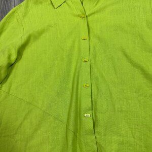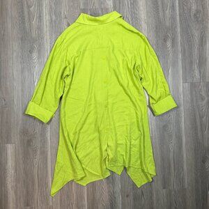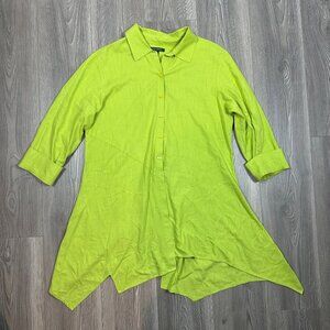 For Cynthia Green Linen Blend Tunic L Asymmetrical Button Down