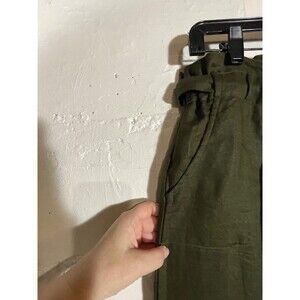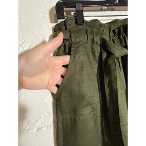For Cynthia Green Linen Paperbag Waist Pants Size Petite M High Rise Relaxed