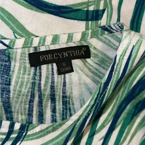 For Cynthia Linen Blend Boxy Ruffle Tropical Leaf Print Cropped Blouse Top Sz S