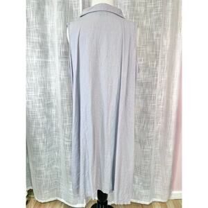For Cynthia Womens Linen Blend Midi Dress L Blue Buttons Collared Pockets Lagenlook Boho Oversized Bohemian Coastal Beach Vacation Travel