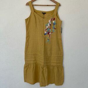 For Cynthia Linen Blend Dress Size M NEW Embellished Embroidered Dress
