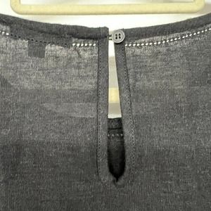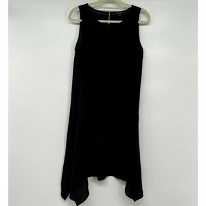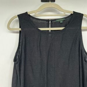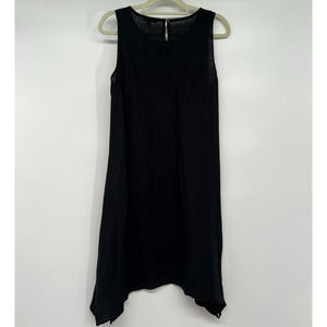 For Cynthia Linen Blend Dress Sz M Black Eyelet Keyhole Sleeveless Hi-Low Hem