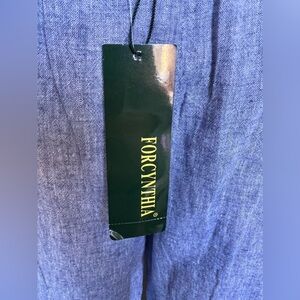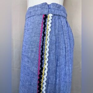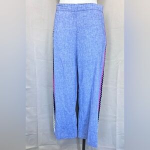 For Cynthia Linen Blend Ric Rac Wide Leg Chambray Pants
