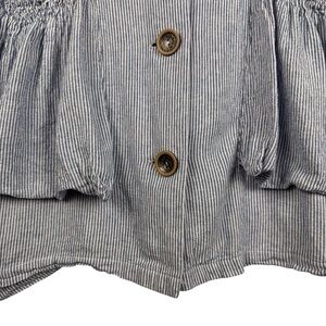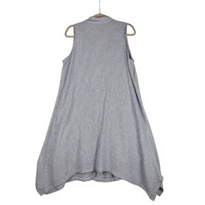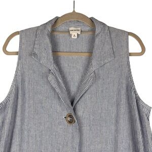For Cynthia Linen Blend Striped Sark Bite Shirt Dress Sz M Patch Ruched Pockets