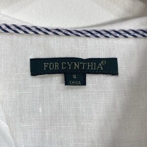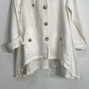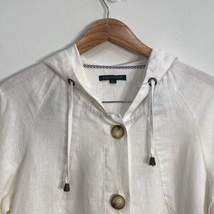 For Cynthia Linen Button Down Hoodie Women's Small Off White