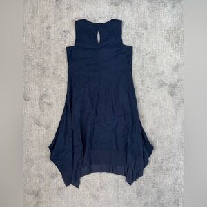 For Cynthia Navy Linen Blend MIDI Peasant Dress