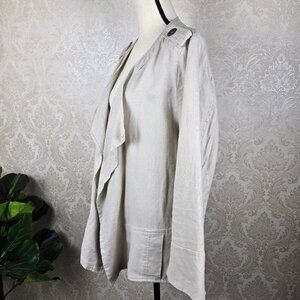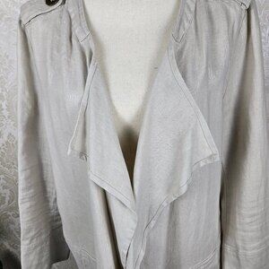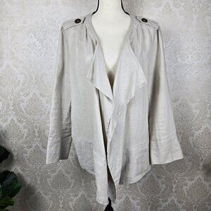 For Cynthia Size 1X Cream Colored Linen Waterfall Jacket Open Front Pockets