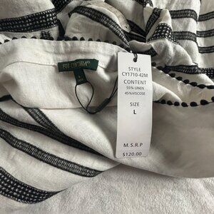 For Cynthia Womens Embroidered Linen Blend 3/4 Sleeve Shift Dress Large New $120