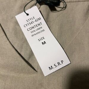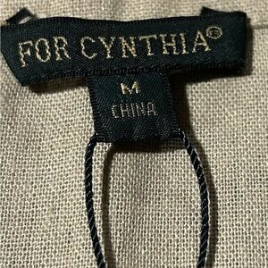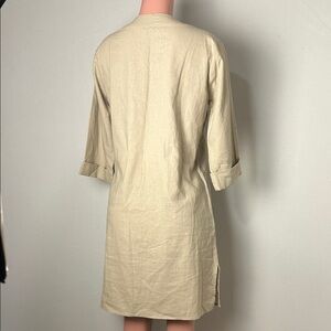 For Cynthia Womens Linen Shift Dress 3/4 Sleeve Beige Minimalist Size Medium