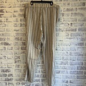 For Cynthia Women’s Size 2X Linen Blend Striped Pull On Pants Pockets Summer NWT
