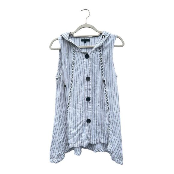 For Cynthia White and Black Striped Sleeveless Button-Down Shirt size small