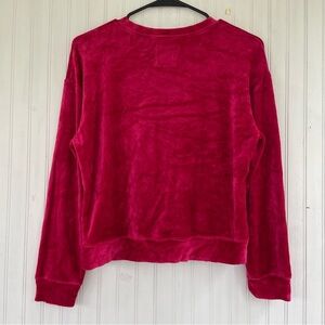 For Days Women's Cranberry Red Fuscia Velvet Velour Crewneck Sweatshirt Size XS