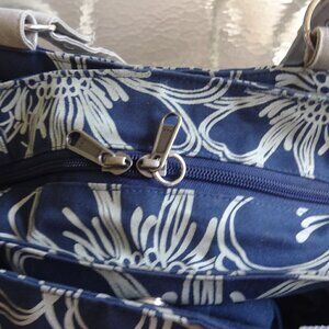 For Freedom purse satchel by Sak Saum 100% cotton canvas, blue with grey flowers