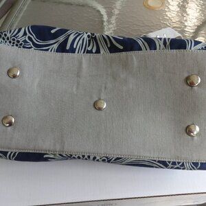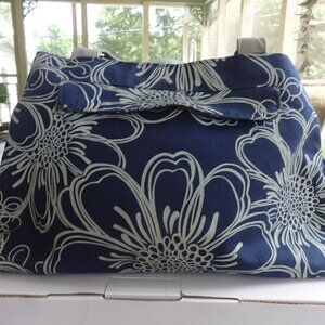 For Freedom purse/ satchel by Sak Saum, 100% cotton canvas, blue with grey flowers print, silver tone