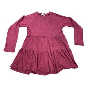 For G And PL Women's Small Burgundy V-Neck 3/4 Sleeve Fairy Peplum Tunic Top