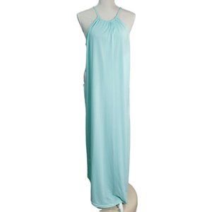 For G and PL Goddess Summer Side Slit Halter Maxi Dress Cover Up Blue Size M