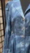 Stylish blue SWISS DOT TRENCH DRESS by For Her NYC. Perfect for casual OUTING, VICTORIAN STYLE, HIGH LOW HEM LINE, BUTTON FRONT, MAXIE LENGTH,DRAPED BACK TRAIN, LONG SLEEVES BUTTON CUFF. NEW WITH TAG