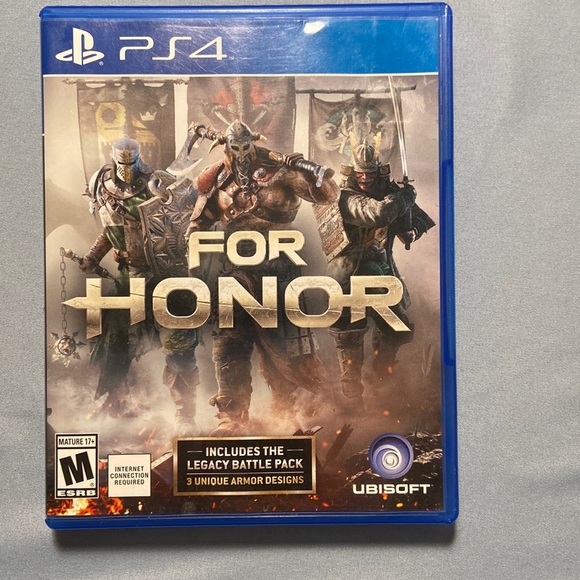 For Honor PS4, used,2017, slightly more scratches than others I’ve posted but is still a working game, rated M for mature, 1 player, 1-8 network players, online play required