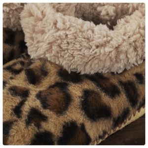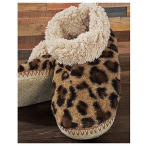 Cozy warm leopard print indoor slipper with microfiber fur lining and non-slip grip sole *Upper: 100% Polyester *Lining: 100% Polyester *Outsole: 100% Polyester ‼️‼️SIZE L/XL: FITS SHOE SIZE 8-10‼️‼️ Great gift idea, stocking stuffer