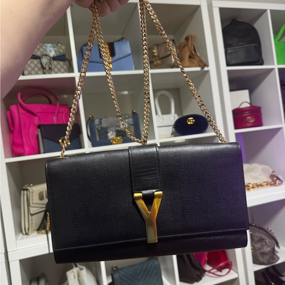Elegant black YSL clutch converted to a crossbody. Preloved very good condition. Perfect for any occasion.