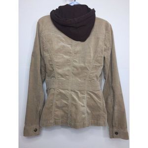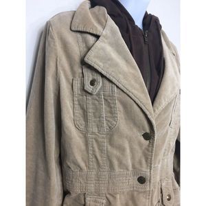 For Joseph Fortune Women's Hooded Beige Pinwale Corduroy Zip Front Jacket M