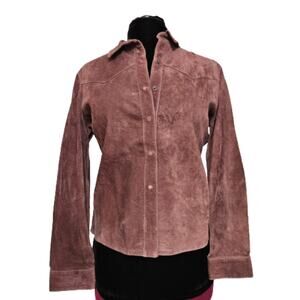 For Joseph Snap Front 100% Leather Western Cowgirl Mauve Shacket Size Large