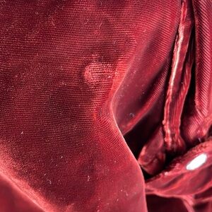 For Joseph Vintage Women’s Deep Red Burgundy Crushed Velvet Skirt Set. The top is a long sleeve button front closure Tunic with one button sleeve. The skirt is a button down the side closure with elastic back at waist.
