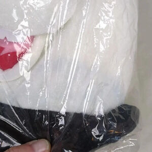 There is an area to the side of the bunny's mouth that has had slight color fade from the black brim lying on it, so it looks faintly blue. Please see pics!!