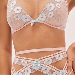 For Love & Lemons Aurora Underwire Bra Pink Blue XS NEW