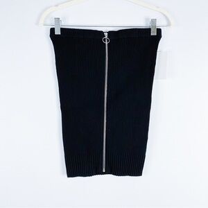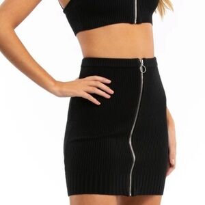 For Love And Lemons black skirt with silver zipper detail at front. Ribbed material with lots of stretch.