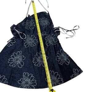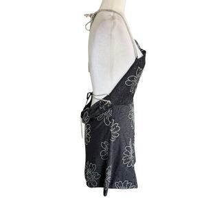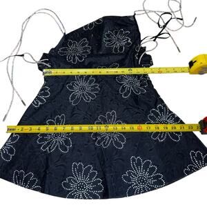 Chic black mini dress with white floral patterns. Features a stylish one-shoulder design. Perfect for a night out.