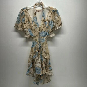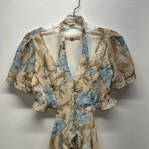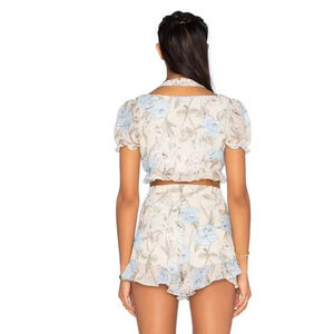 For Love And Lemons Cadence Romper Short Sleeve Floral Flower Cream Blue Size XS