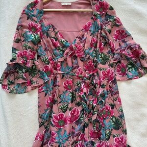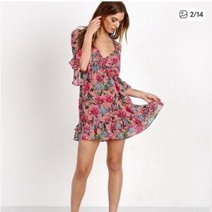 For Love And Lemons Churro Mini dress in Pink Flamenco. So cute on! In perfect condition! Missing the size tag but it’s a size small! #forloveandlemons #revolve #luxury #summerdress #minidress #feminine #falldress #fallfashion
