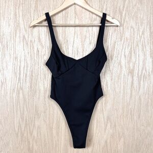 For Love And Lemons Clara Retro Ribbed Thong Bodysuit in Black