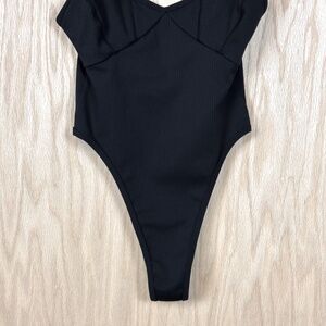 New Without Tags Ribbed Clara Retro Bodysuit by For Love & Lemons. An all-in-one bodysuit straight from the nineties with a high-leg cut and simple silhouette.