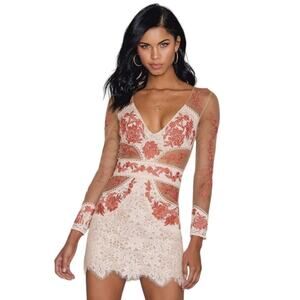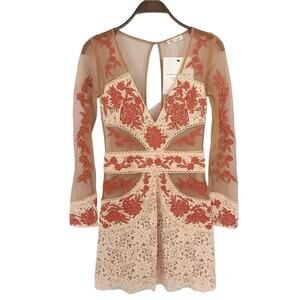 For Love And Lemons Embroidered Mini Dress Sheer Long Sleeve Matador Tulle Lace