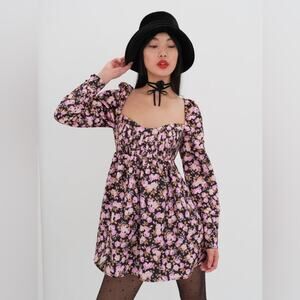 For Love And Lemons Floral Kate Long Sleeve Mini Dress M