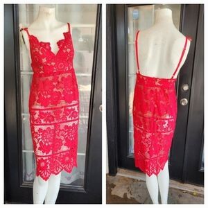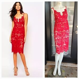 For Love And Lemons Gianna Midi Dress In Red Lace