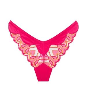 For Love And Lemons Graphic Hearts Thong Panty Bright Pink XL NEW