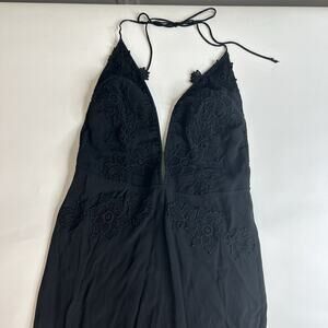 For Love And Lemons Jumpsuit Medium Halter Deep V-Neck Open Back Lace Sexy