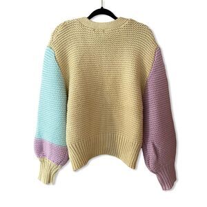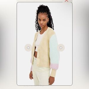 For Love And Lemons Kerry cardigan chunky knit color block cropped sweater L