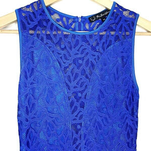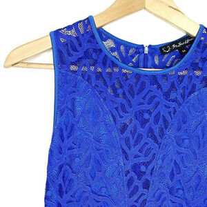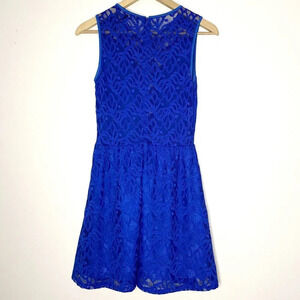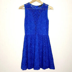 For Love And Lemons Lulu Lace Fit & Flare Sleeveless Dress Illusion Neckline Blue Medium Skater A-Line
