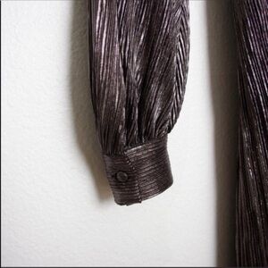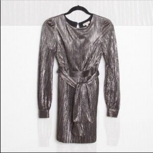 For Love And Lemons Marion Metallic Pleated Mini Dress Gunmetal XS