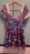 Rare eyelet ruffled puff sleeves. Boning chest. Vintage floral print. Zip up back closure.