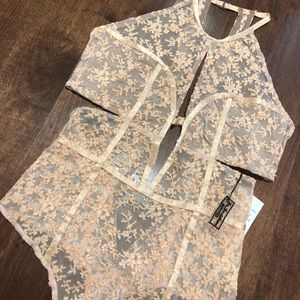 For Love and Lemons Miranda Embroidered bodysuit. It is a nice peach color with beautiful details. Brand new with tag and liner still attached.