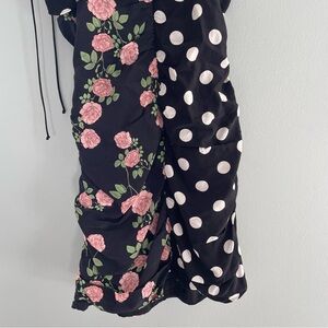 For Love And Lemons Mochi Shirred Mini Dress Black Floral Polka Print NWT XS