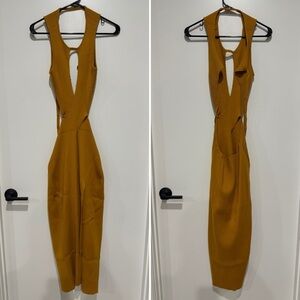 For Love And Lemons Mustard Orange Maggie Midi Dress - XL