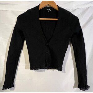 For Love And Lemons Nina Black Knit Crop Cardigan Sweater Size XXS