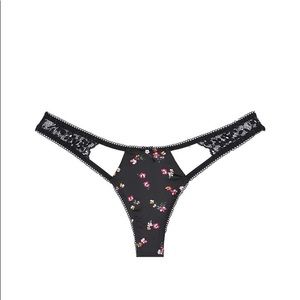 For Love And Lemons Pansy Floral Thong Panty Black Floral XXS NEW