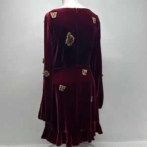 For Love And Lemons Papillon Mini Dress 3D Butterfly Velvet Maroon Red Size XS